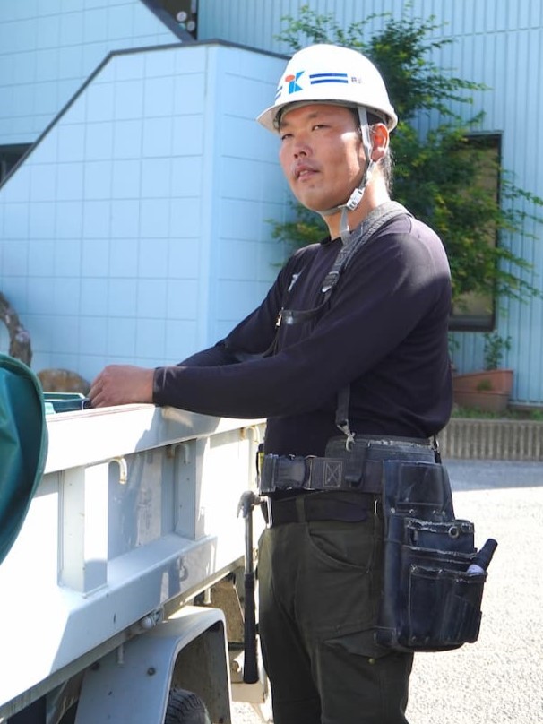 私が乗っているのは、ダンプ機能の付いた軽トラ。「会社に一台あったら便利じゃないですか?」って社長に言ったら、この車になりました(笑)